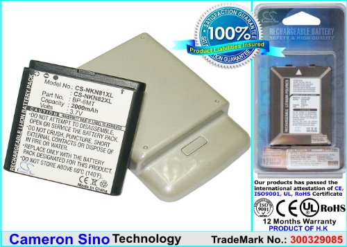 2000mAh Li-ion Mobile Battery For N82 Extended With Grey Color Back Cover Feature